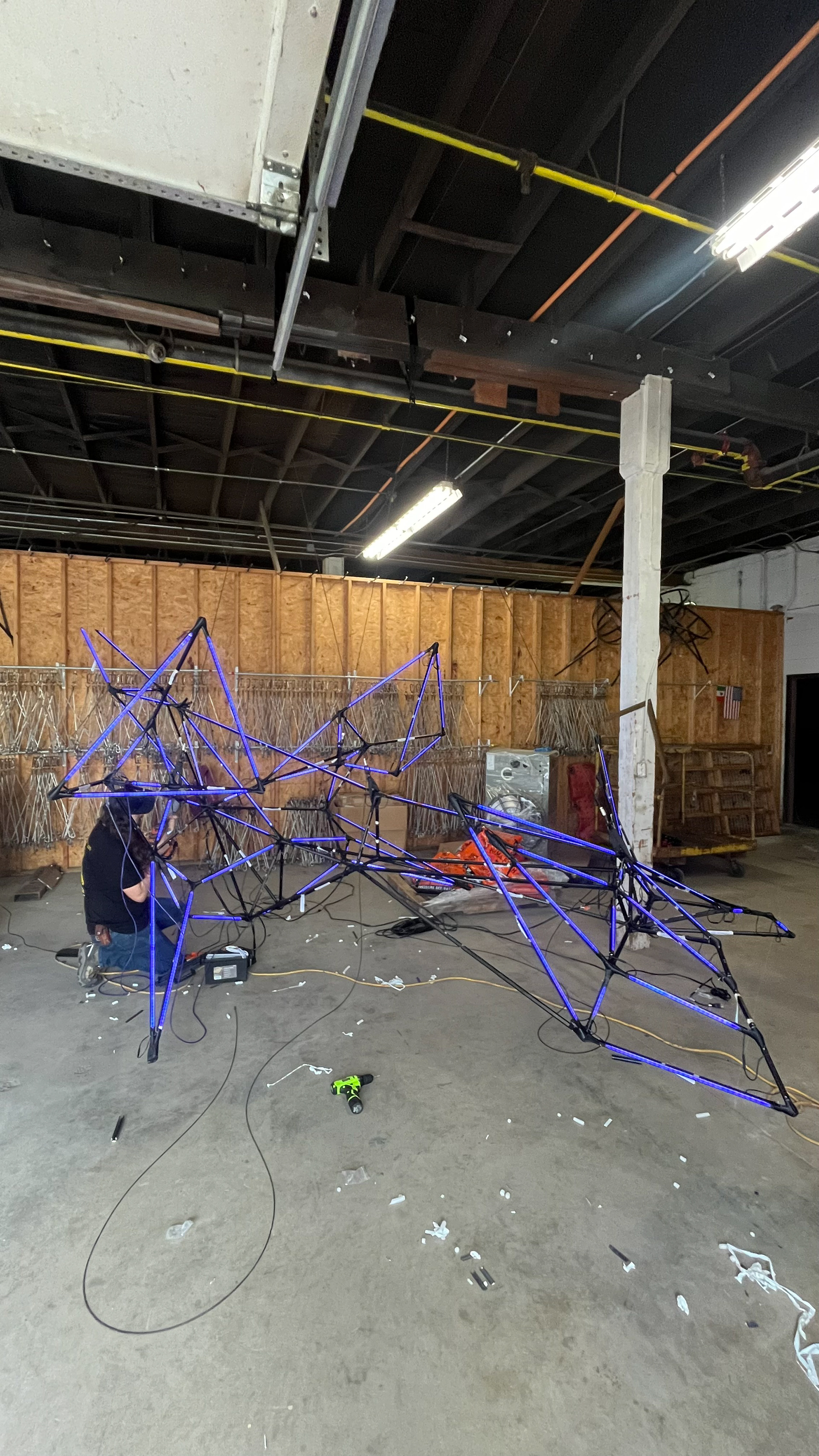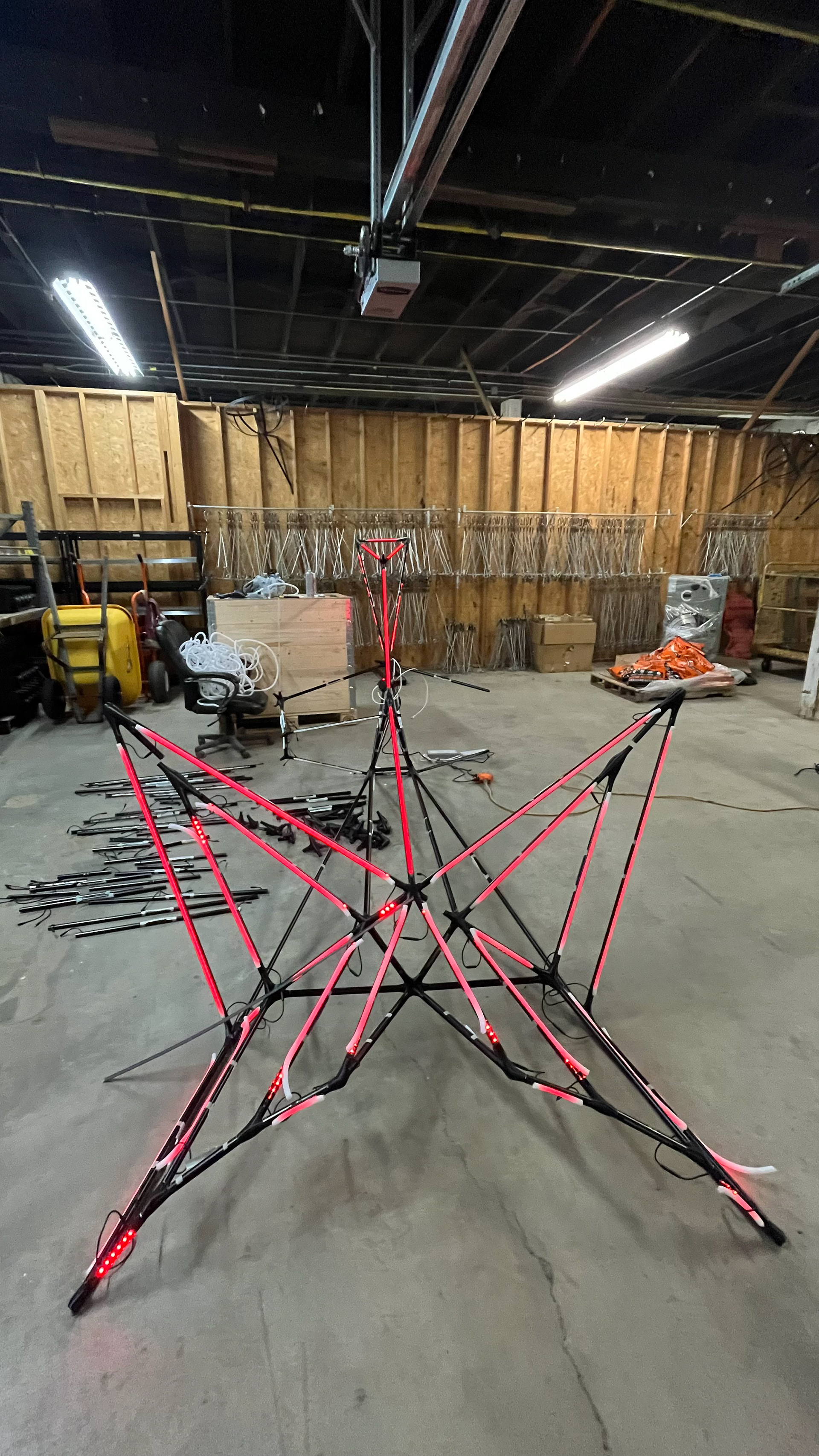 Inspired by Tengrian mythology, the Mangus are demonic beings who hunt humans not by sight, but by sensing the inner light of their souls. This installation transforms that myth into a public, urban-scale light sculpture. The sculpture itself takes the form of a monstrous figure — part skeletal, part luminous, part shadow. It is both terrifying and mesmerizing: a guardian of the space that awakens in response to the living “lights” of the city’s people.